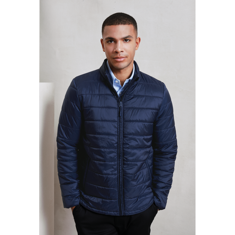 Podložena jakna z zadrgo po celotni dolžini in vodoravnimi detajli