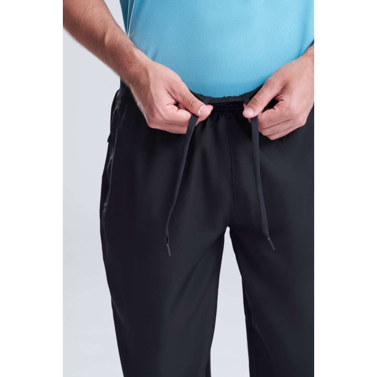60-% poliester, 40-% recikliran poliester Sproščen kroj Hitro suha tkanina, ki odvaja vlago Ergonomski dizajn Elastične manšete Stranski žepi z zadrgo Elastičen pas Prilagodljive vrvice Etiketa, ki se lahko odtrga