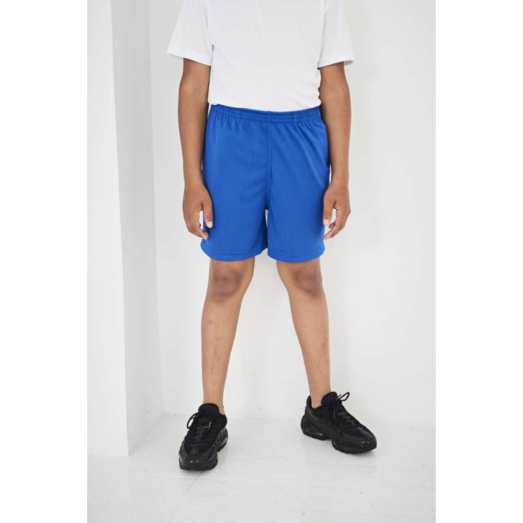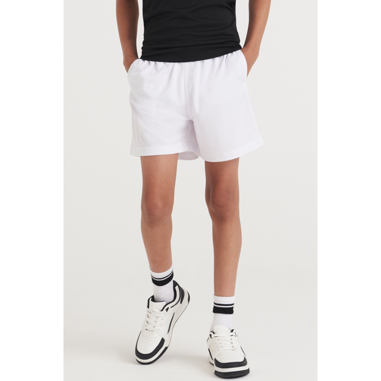 100-% poliester Sproščen kroj Lahka teksturirana tkanina NeotericTM podjetja AWDis z značilnimi lastnostmi odvajanja vlage Hitro suha tkanina, ki odvaja vlago Notranji žep za ključe Mrežica v notranjosti Elastičen pas Žepi na stranskem šivu Etiketa, ki se lahko odtrga UV-zaščita UPF 30+