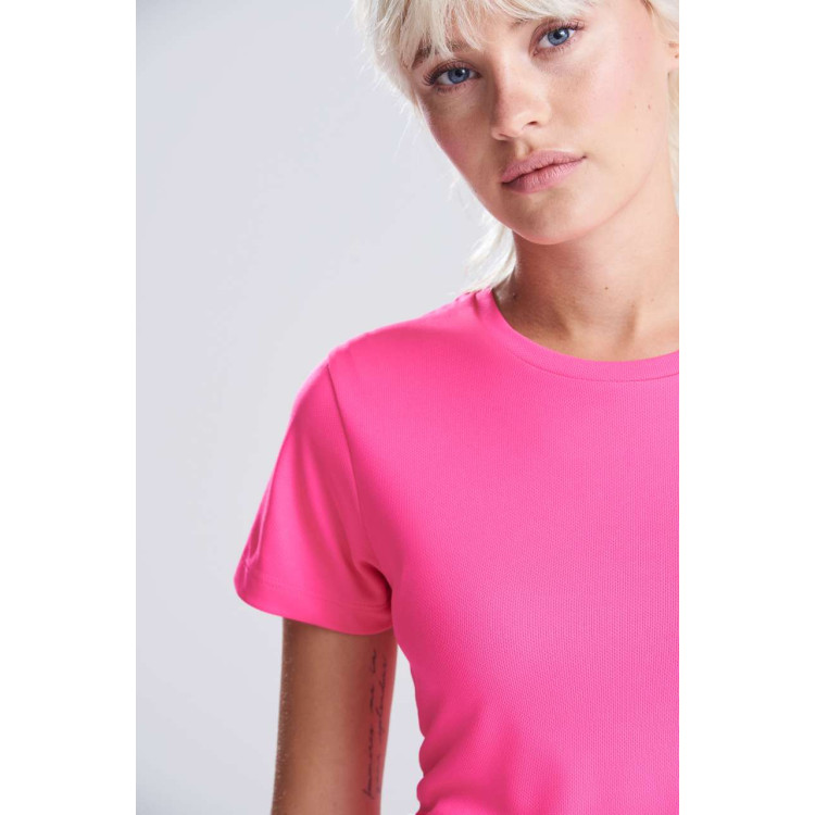 100-% poliester Standardni kroj Lahka teksturirana tkanina Neoteric TM podjetja AWDis, z značilnimi lastnostmi odvajanja vlage in hitrega sušenja Ukrivljen zadnji rob za dodatno udobje Etiketa, ki se lahko odtrga Okrogli ovratnik iz enakega blaga Detajl z dvojnim šivom Okrepljen zadnji del ovratnika iz enakega blaga UV-zaščita UPF 30+ Raztegljiva tkanina Dizajn z vstavljenimi rokavi