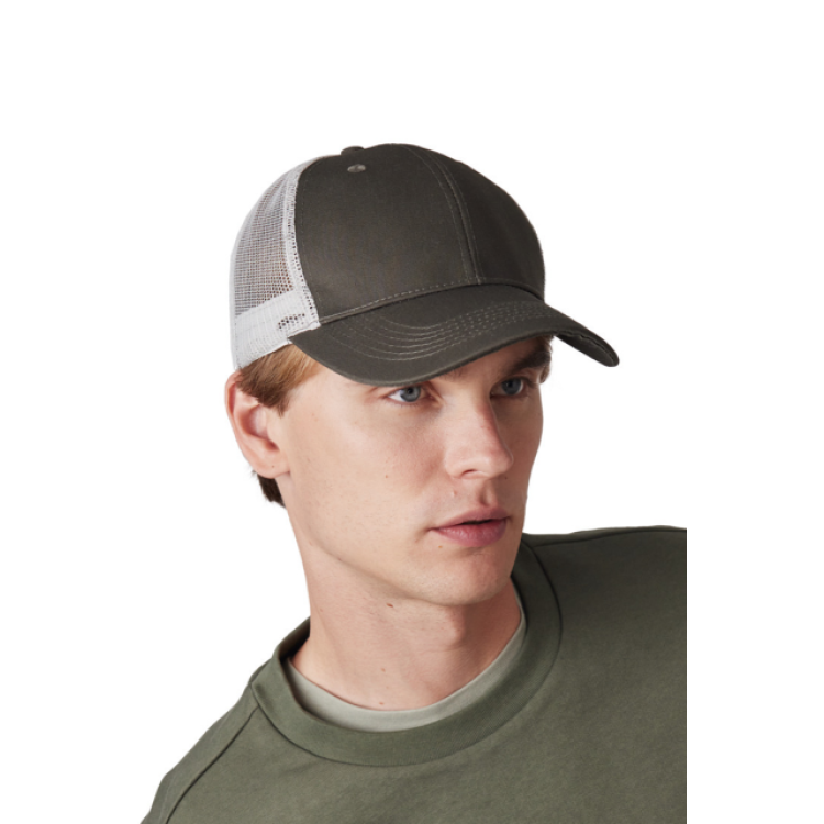 65-% poliester/35-% bombaž 6-delna kapa s srednjeprofilnim ščitnikom pred soncem in istobarvnimi ojačanimi sprednjimi deli