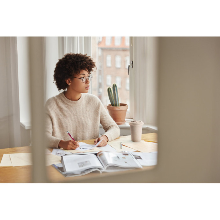 Cork ballpoint with a metal clip. Blue ink. As the product is made from natural materials, the colou..