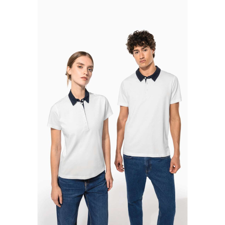 Kontrastni ovratnik in notranje zapenjanje s tremi belimi nepravimi bisernimi gumbi