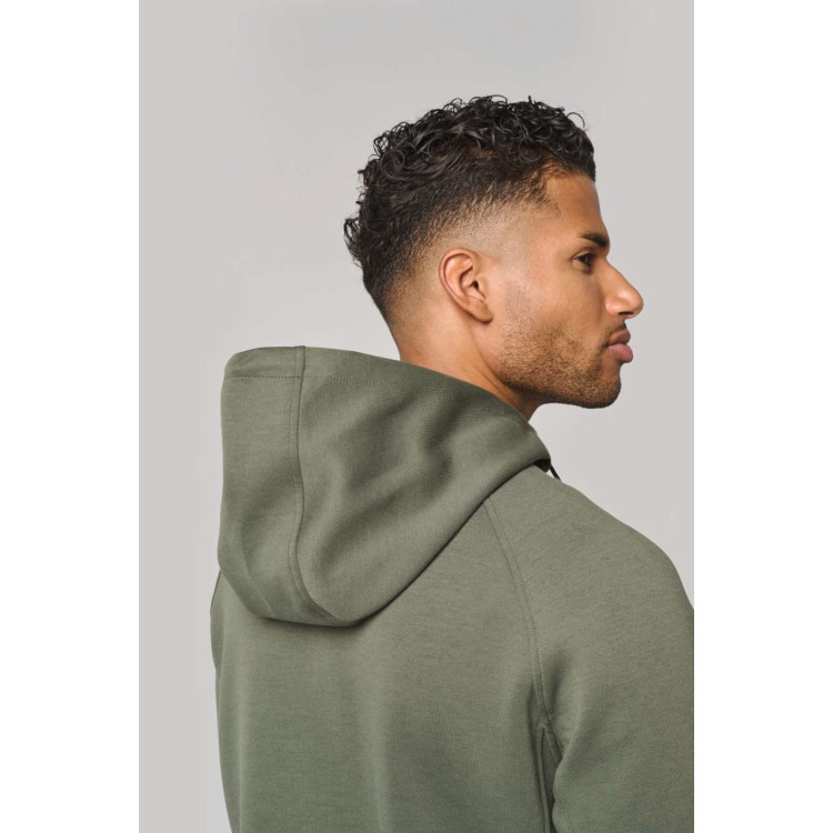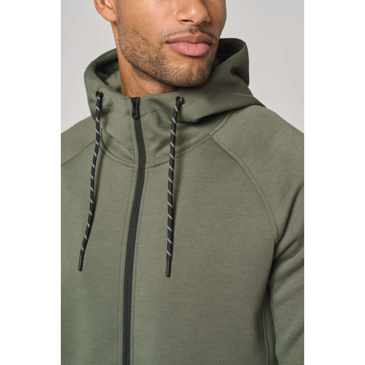 Kapuca s podlogo iz 65-% poliestra in 35-% viskoze ter dvobarvno vrvico s plastičnimi konicami
