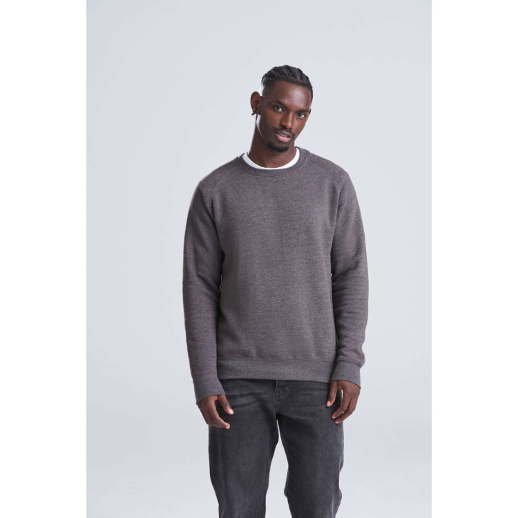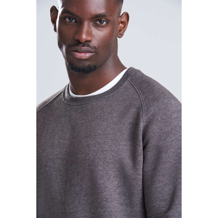 70-% bombaž z vijačnim predenjem/30-% poliester Standardni kroj Težji kos Rokavi raglan Rebraste manšete in rob Brušen notranji flis Detajl z dvojnim šivom Etiketa, ki se lahko odtrga 100-% bombažna tkanina