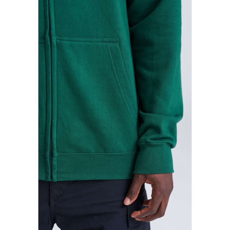 80-% bombaž z vijačnim predenjem/20-% poliester Standardni kroj Majica s kapuco na zadrgo po celotni dolžini Zadrga YKK s prekrivno tkanino v enaki barvi Kapuca iz dvojne tkanine Okrogle vrvice Kengurujska žepa Brušen notranji flis Rebraste manšete in rob Detajl z dvojnim šivom Etiketa, ki se lahko odtrga 100-% bombažna tkanina