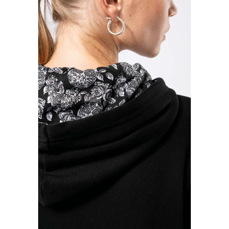 Kapuca, podložena s tematsko potiskano bombažno jersey tkanino in s kontrastno vrvico