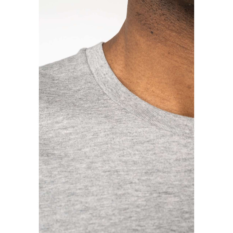 100-% organski bombaž, česani bombaž Teliran kroj Stranski šivi Encimsko oprano 1 x 1 rebrast ovratnik Zaključek z dvojnim šivom na rokavih in spodnjem robu Ojačana ramena iz glavnega materiala