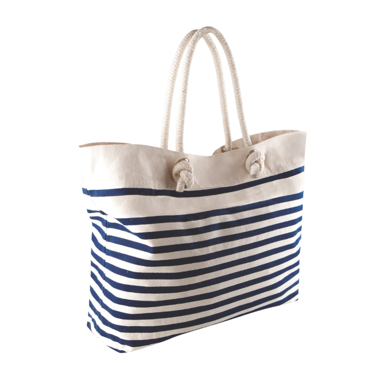 Velika nakupovalna torba v mornarskem stilu in bombažnim platnom Bombažni ročaji iz vrvi Notranji žep na zadrgo Zapiranje s pritiskači