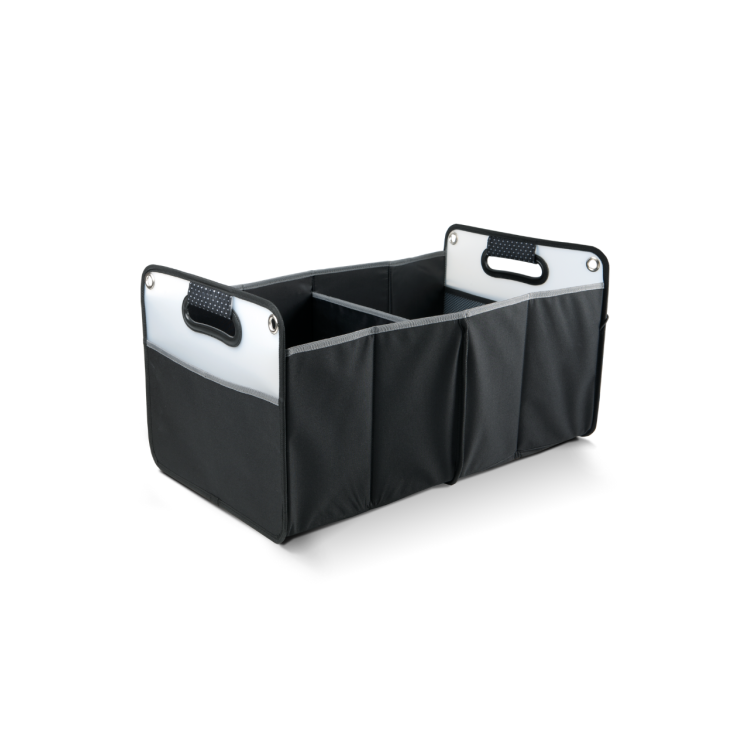 Organizator za prtljažnik avtomobila iz poliestra 600D 2 velika raztegljiva predala z elastičnim zapenjanjem Stranski žep Kovinsko obrobljene odprtine ob straneh