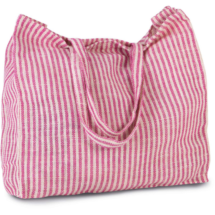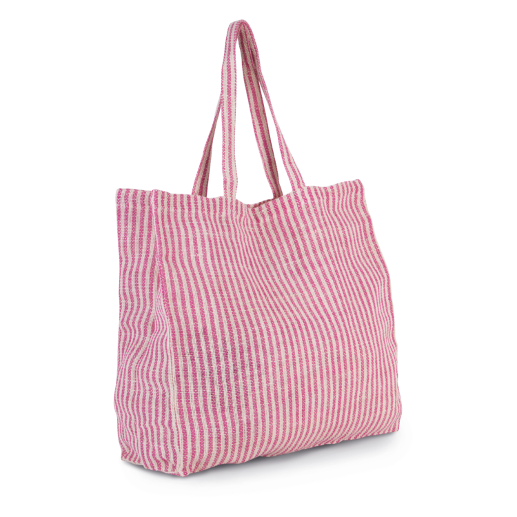 Kvadratna nakupovalna torba s tkanimi črtami iz jute in bombaža, obarvanimi s prejo (juco)