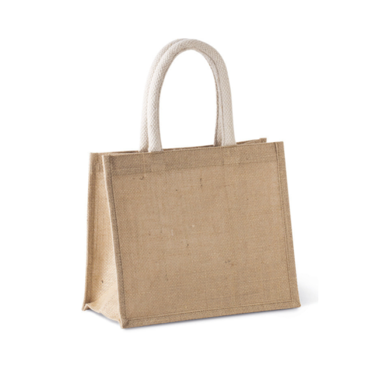 Vrečka iz jute z bombažnima ročajema Srednja velikost Naravna barva: Certifikat STANDARD 100 OEKO-TEX® N° CQ 1164/1, IFTH