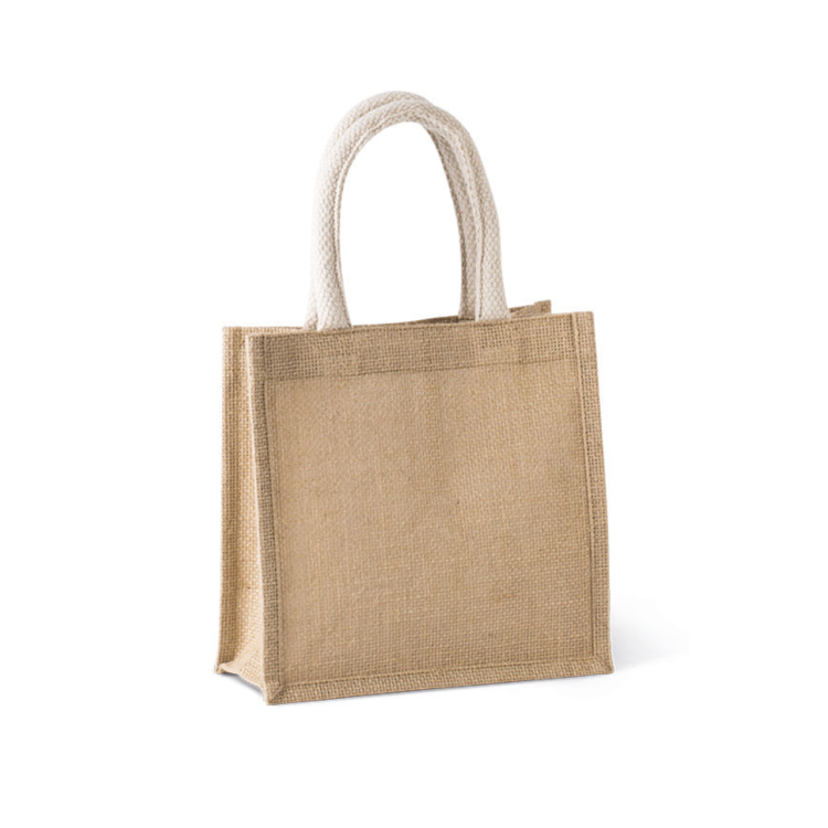 Vrečka iz jute z bombažnima ročajema Majhna velikost Naravna barva: Certifikat STANDARD 100 OEKO-TEX® N° CQ 1164/1, IFTH