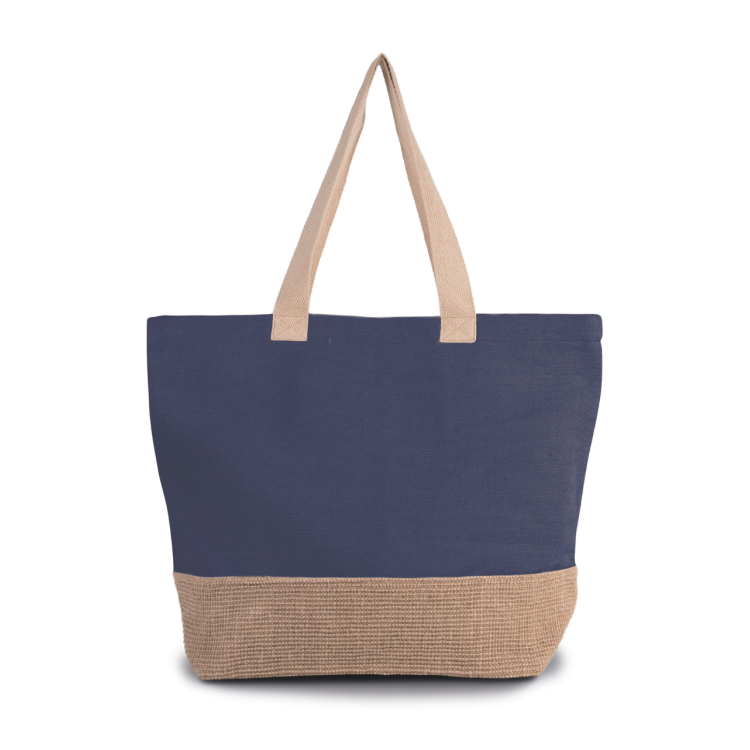 Velika nakupovalna torba iz bombaža in jute (juco) s podlago iz jute naravne kontrastne barve