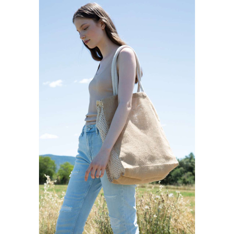 Nakupovalna vrečka iz jute z bombažnim mrežastim vložkom